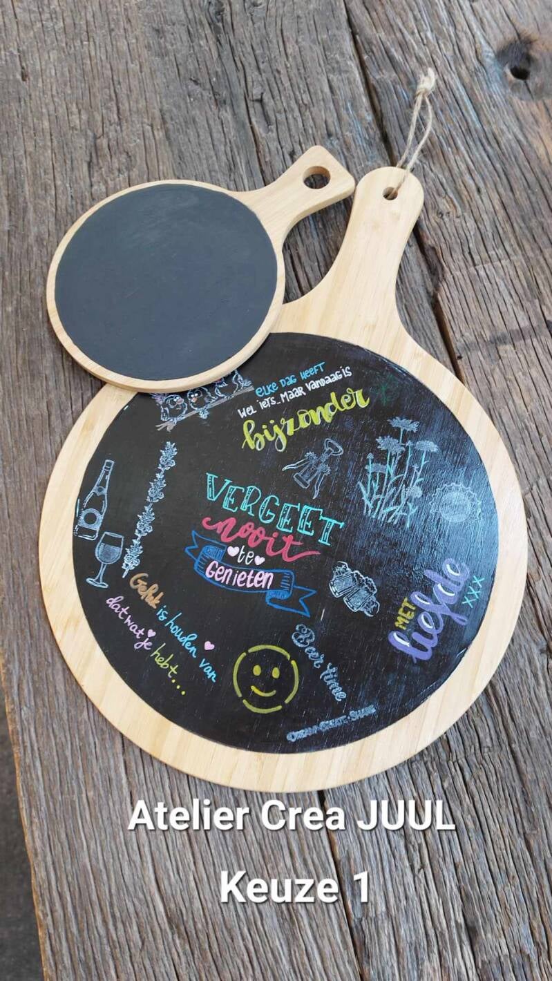 De kleinere bij elke keuze toegevoegde borrelplank is trouwens ook leuk om cadeau te geven bij een afscheid, jubileum of verjaardag. Origineel en op maat gemaakt (door jou!).