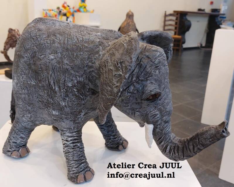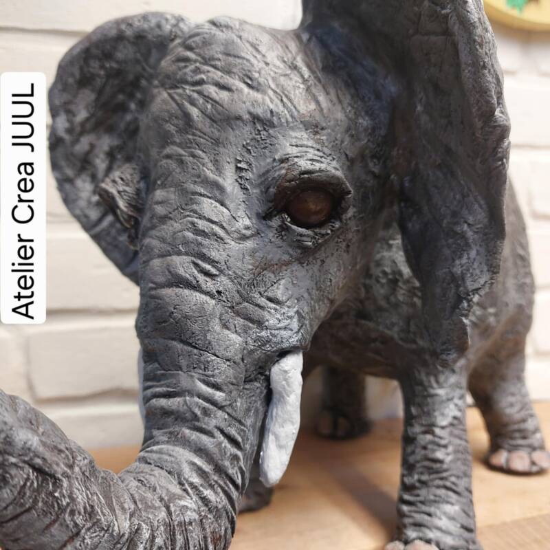 Realistisch gemaakt. Hiervoor heb ik veelvuldig foto's van olifanten bekeken, de ogen, de huid ... en deze zoveel mogelijk in mijn creatie verwerkt.